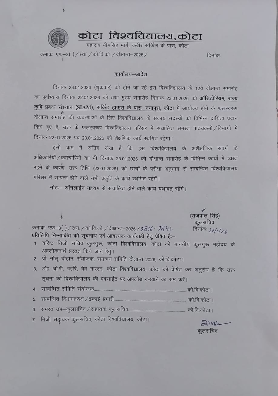 Notice regarding teaching suspension as per office order on campus on January 22nd and 23rd